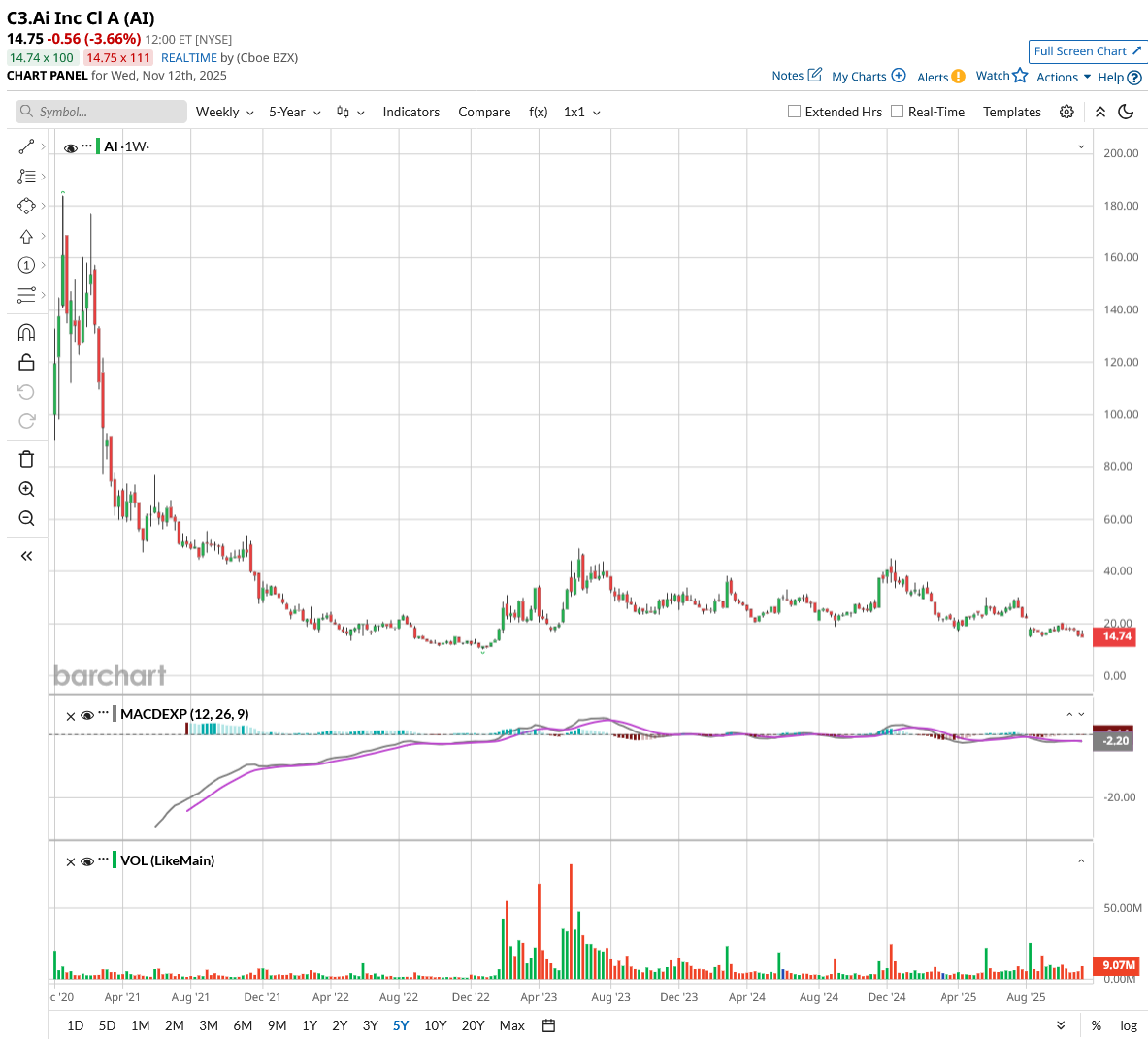 C3.ai’s struggles have been mounting throughout the year due to its weak financial performance. In the most recent quarter, it reported revenue of $70.3 million, a 19% year-over-year (YoY) decrease, along with a net loss of nearly $117 million. Two months back, C3.ai withdrew its full-year guidance, citing leadership changes and a restructuring of sales operations.