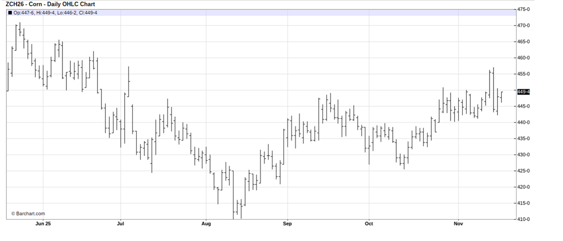 March corn (ZCH26) futures present a buying opportunity on more price strength.