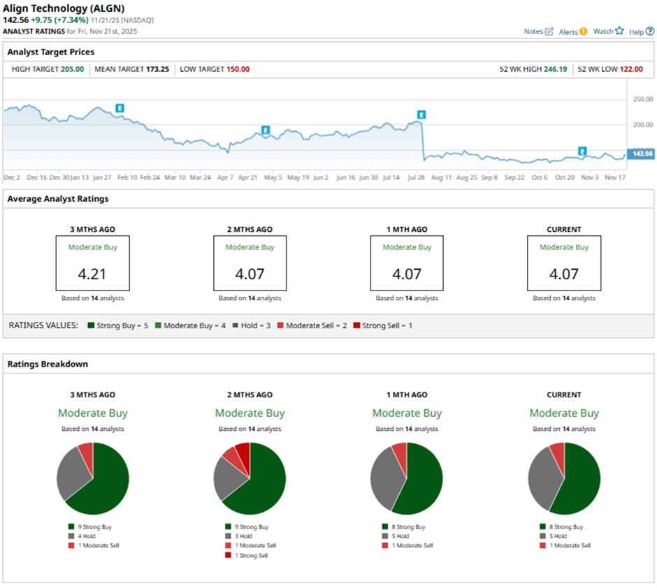 The mean price target of $173.25 represents a premium of 21.5% to ALGN's current price. The Street-high price target of $205 suggests a 43.8% potential upside.
