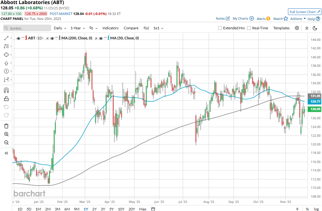 ABT stock has dropped below its 50-day and 200-day moving averages in mid-October, underscoring its bearish trend.