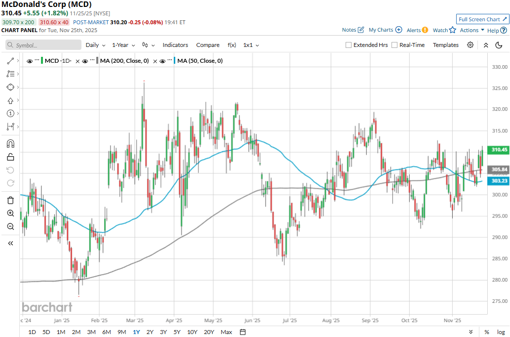 McDonald's has underperformed the Dow over the longer term as well. MCD stock has gained 7.1% on a YTD basis and 4.8% over the past 52 weeks, compared to Dow’s 10.7% gains in 2025 and 5.3% returns over the past year.