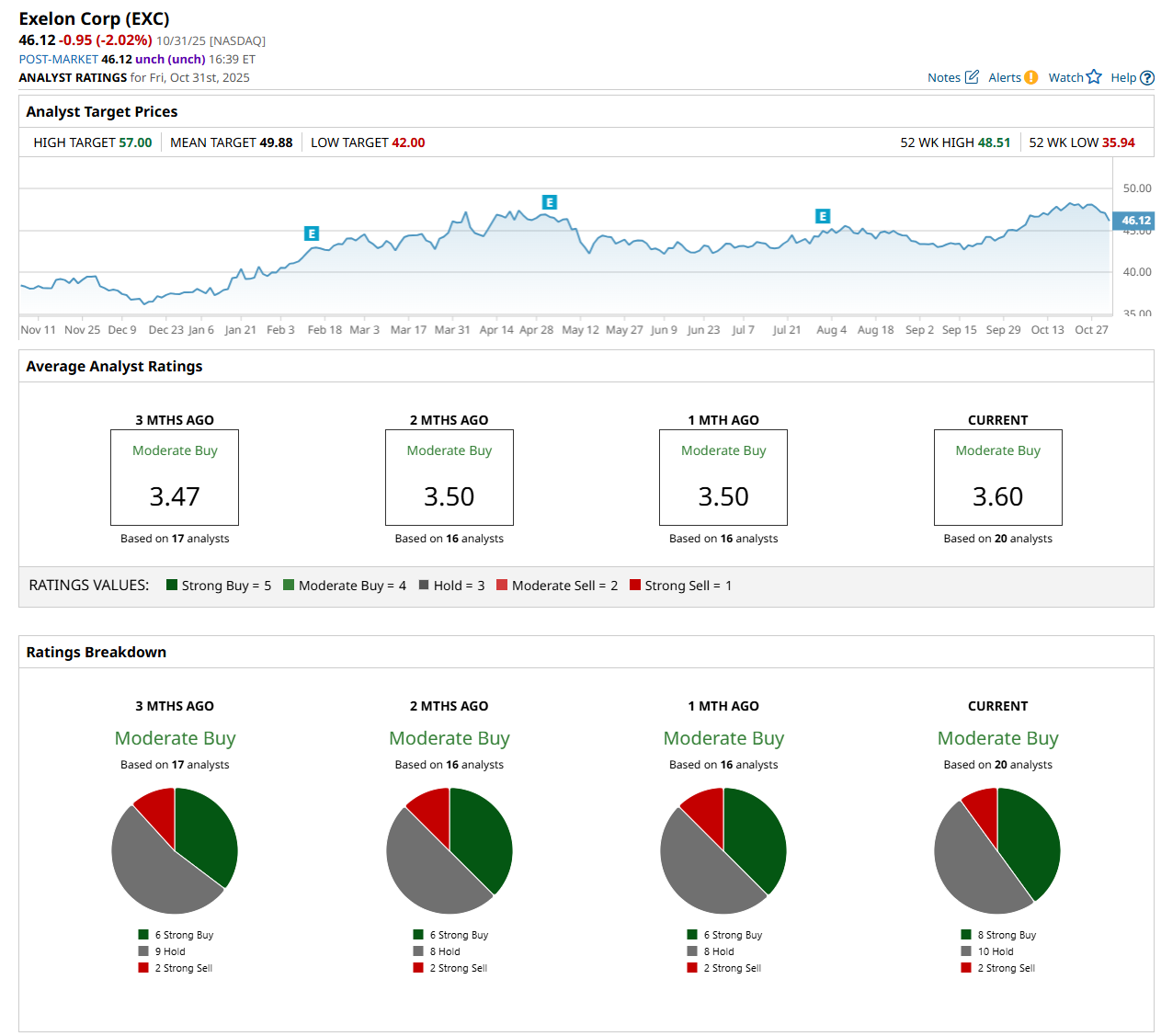 The mean price target of $49.88 represents an 8.2% premium from EXC’s current price levels, while the Street-high price target of $57 suggests an upside potential of 23.6%.