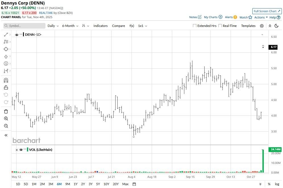 With DENN stock already hovering near the $6.25 buyout price, the market has largely priced in the acquisition.