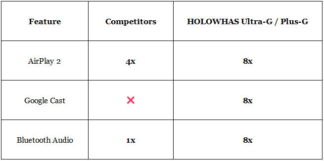 HOLOWHAS Ultra-G & Plus-G: The World’s Only 8x AirPlay 2, 8x Google Cast & 8x Bluetooth Audio