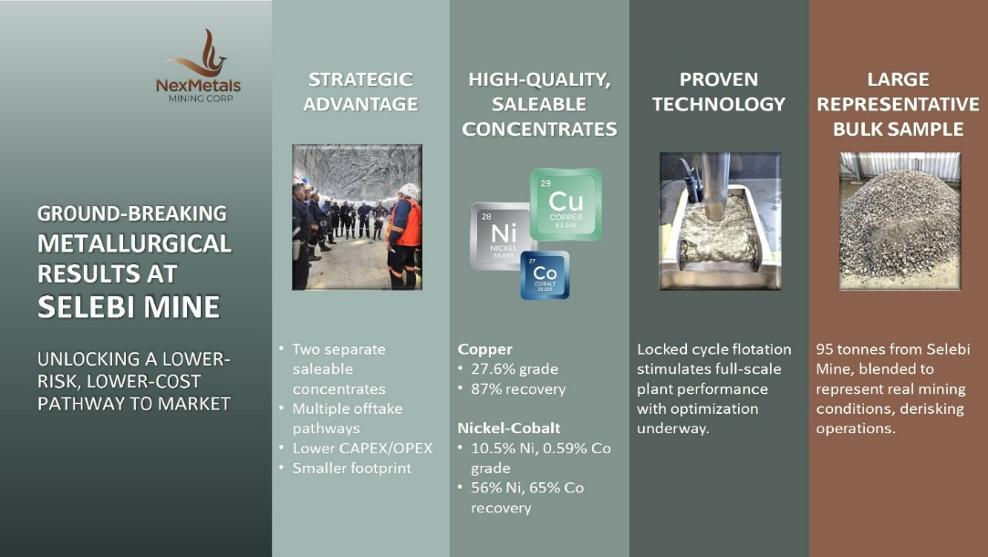 Following NexMetals’ bulk sample-based metallurgical program at its Selebi Mines in Botswana, the company has created “the optionality to produce both a saleable copper concentrate and a saleable nickel concentrate”.